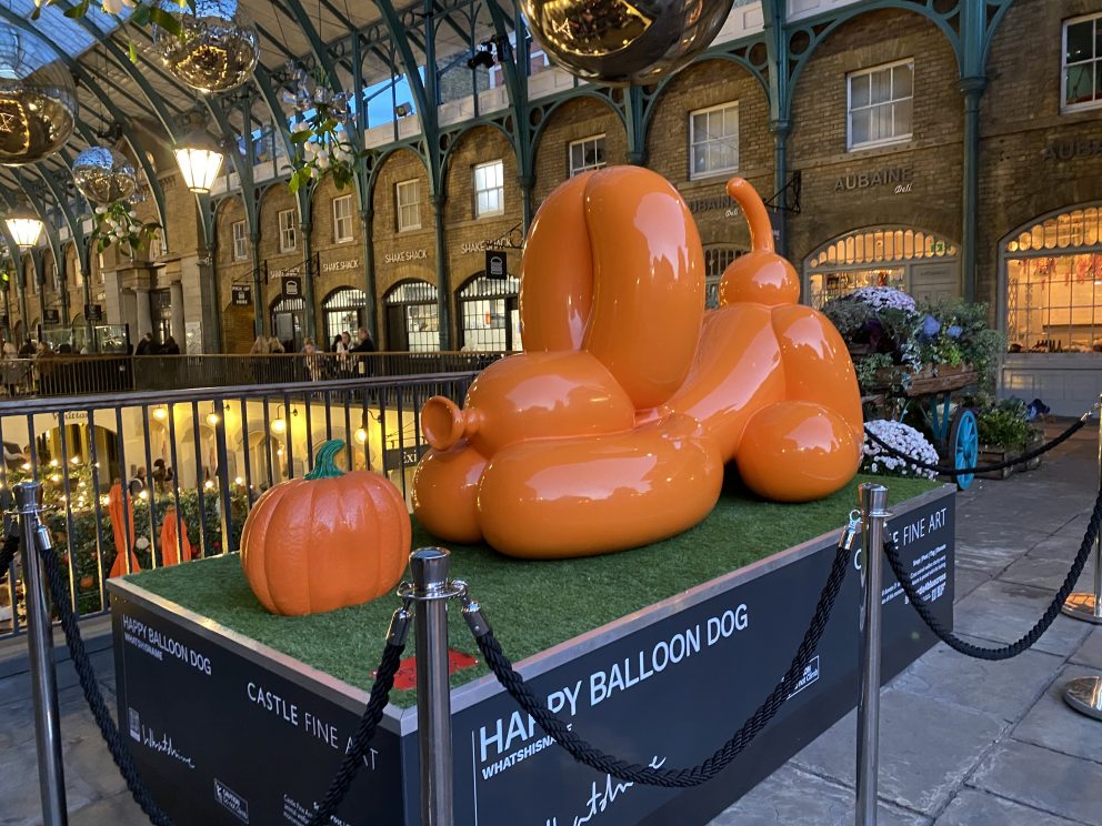 Whatshisname Balloon Dog installation in Covent Garden raising money for Blue Cross