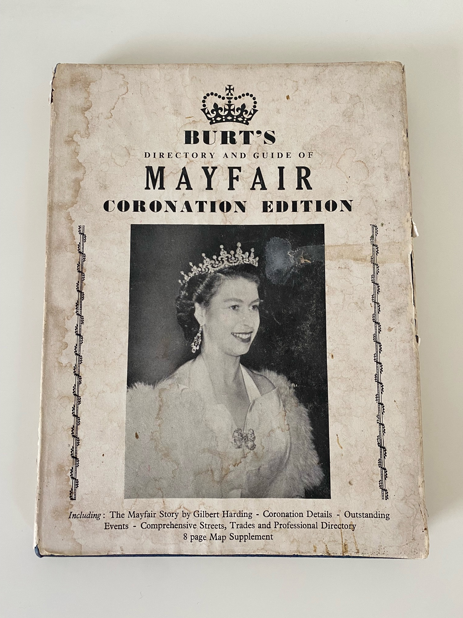 We are absolutely delighted with our latest acquisition for our archive. Burt’s Directory and Guide of Mayfair: Coronation Edition offers a fascinating insight into the area of Mayfair in 1953. We particularly love the following quote from journalist Gilbert Harding’s introduction: