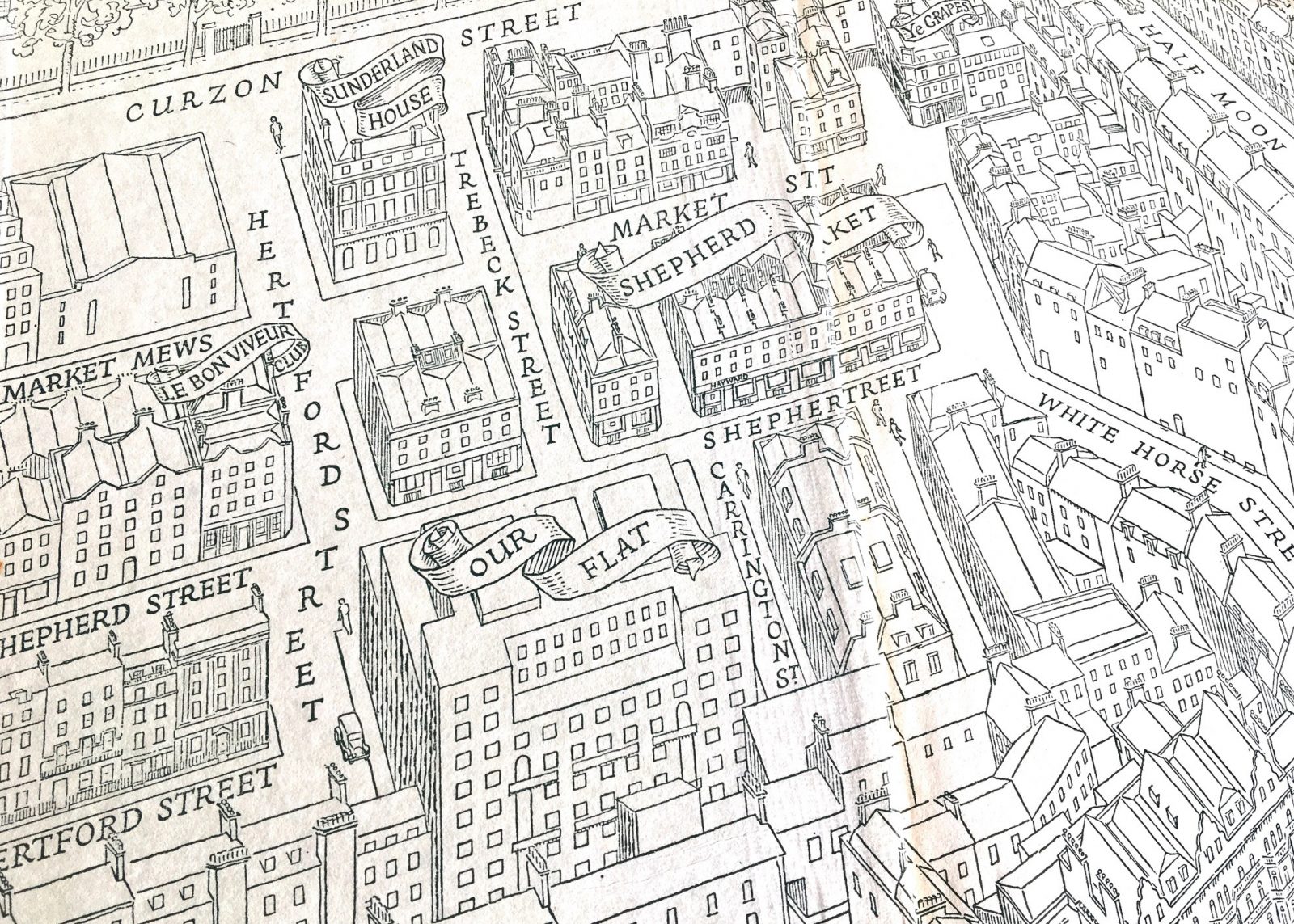What was Hertford Street and the surrounding area of Shepherd Market like during this period? We are afforded wonderfully detailed accounts in Robert Henrey’s publication A Village in Piccadilly and his wife Madeleine’s book The Incredible City. The couple lived with their infant son in an apartment in Carrington House, located on the corner of Hertford Street which generously gifted them views along the length of Hertford Street and, on the other side, of Shepherd Market. Robert describes the outlook as “so admirable that I doubt if any other building… could give a more magnificent sweep over the roofs and spires of London… We towered over Shepherd Market – that village sleepily living its own life just behind Piccadilly.”.