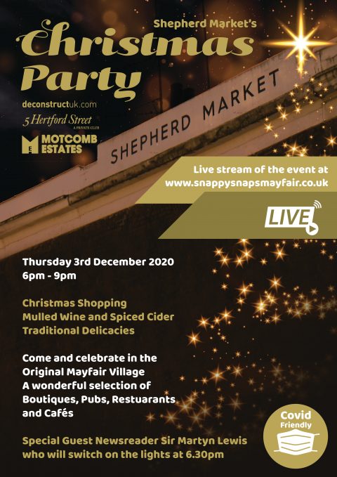 We are absolutely delighted to share that on Thursday 3 December, Shepherd Market’s Christmas lights will be switched on. Come and celebrate the festive season with us and our fabulous neighbours; there will be mince pies, spiced cider and traditional delicacies to keep you warm.